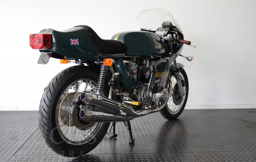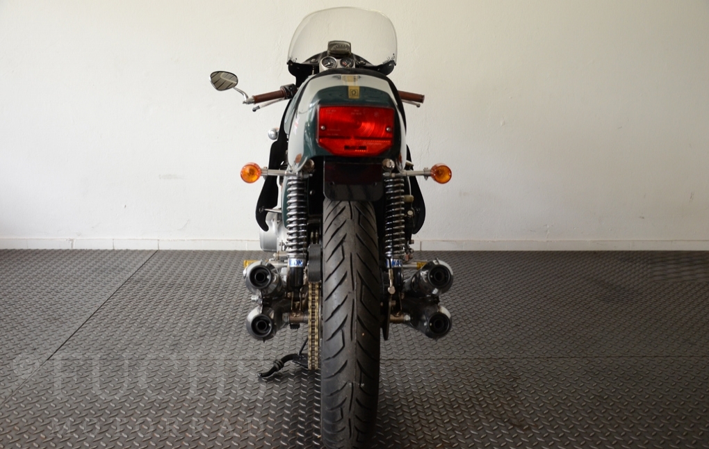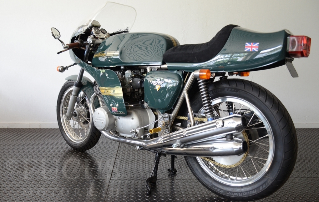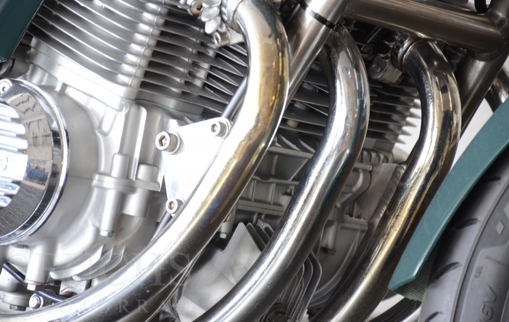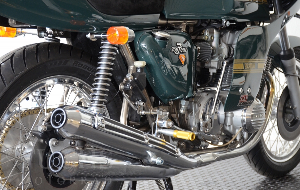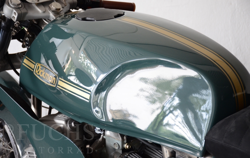 The Rickman has got an german registration in 1975. Our Rickman with the Honda CB 750 four engine was fully restored with an engine overhaul. The machine is in very good condition with a small flaw. Custom Paint and chrome parts are perfect. The engine runs excellent.